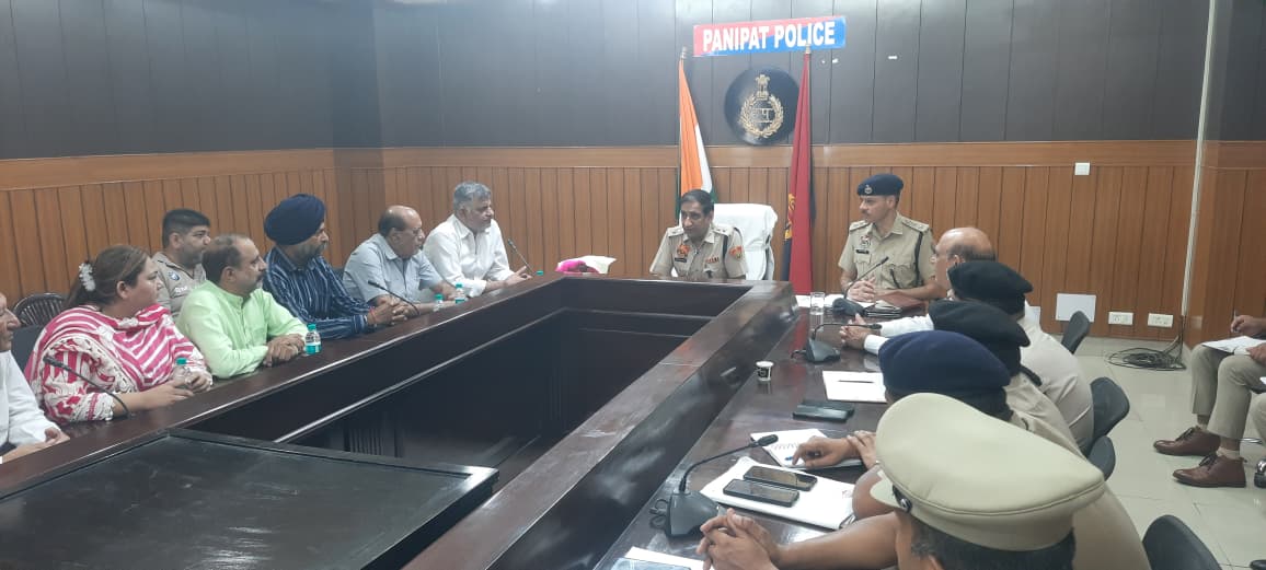 वायस ऑफ पानीपत (कुलवन्त सिंह):- SP भूपेंद्र सिंह आईपीएस ने त्योहारी सीजन में बाजारों की व्यवस्था व यातायात व्यवस्था को सुगम व सुचारु रुप से बनाए रखने के लिए जिला सचिवालय स्थित पुलिस विभाग के सभागार में यातायात उप पुलिस अधीक्षक सुरेश सैनी के साथ बाजारों के प्रधानों की बैठक लेकर विभिन्न बिंदुओं पर विचार विर्मश किया। बैठक में प्रधानों ने न केवल सुझाव दिए बल्कि पुलिस के साथ सुधार में हर प्रसास में सहभागी बनने की बात भी कही। पुलिस अधीक्षक महोदय ने आश्वस्त किया कि सुधार के किसी भी प्रयास में पुलिस बाजारों के प्रधान और शहर के लोगों के साथ है।