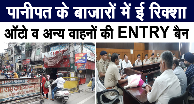 पानीपत के बाजारों में ई रिक्शा,ऑटो व अन्य वाहनों की ENTRY बैन, सुबह 10 बजे से रात 8 बजे तक रहेगा प्रतिबंध