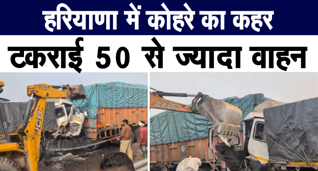 वायस ऑफ पानीपत (शालू मौर्या):-कई जिले गहरी धुंध की चपेट में हैं… विजिबिलिटी 10 मीटर तक रह गई है… इसके चलते हिसार में नेशनल हाईवे 52 पर धिकताना मोड पर हरियाणा रोडवेज की दो बसें कई वाहनों से टकरा गई… इसी दौरान कैथल रोडवेज डिपो की सवारियों से भरी बस डंपर से टकरा गई… पीछे आ रही एक बस की ऑल्टो कार से टक्कर हो गई…वहीं बाइक सवार युवक भी चपेट में आ गया… आपस में पांच वाहन टकराए है… इस हादसे में करीब 100 से ज्यादा लोगों की जान बच गई…