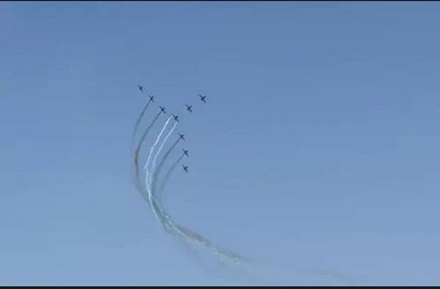 वायस ऑफ पानीपत (शालू मौर्या):- हरियाणा के हिसार में आज महाराजा अग्रसेन एयरपोर्ट पर भारतीय वायुसेना की प्रसिद्ध सूर्य किरण एयरोबेटिक टीम रोमांचक एयर शो पेश कर रही है… इस एयर शो का उद्देश्य युवाओं को प्रेरित करना है ताकि वे आने वाले समय में भारतीय वायुसेना और पायलट बनने का सपना देख सकें…