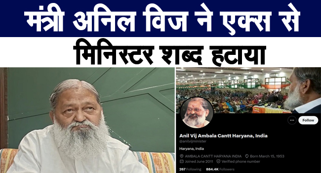 मंत्री अनिल विज ने एक्स से मिनिस्टर शब्द हटाया