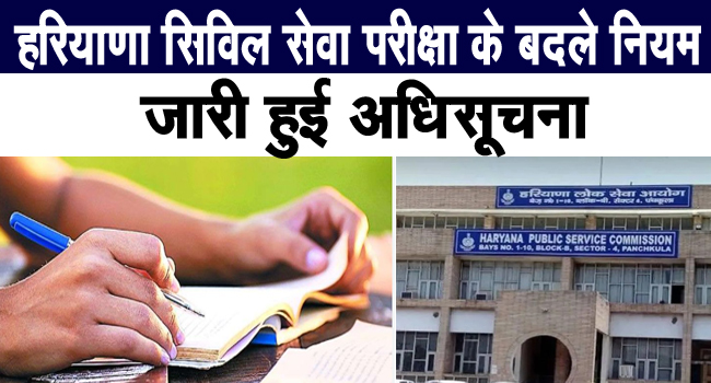 मुख्यमंत्री नायब सिह सैनी की अध्यक्षता में इसी महीने हुई राज्य मंत्रिमंडल की बैठक में बदले हुए नियमों पर मुहर लगने के बाद मुख्य सचिव अनुराग रस्तोगी ने सोमवार को इसकी अधिसूचना जारी कर दी है.. बदले हुए नियमों के अनुसार, मुख्य लिखित परीक्षा में छह प्रश्नपत्र होंगे, जो कि 600 अंकों के रहेंगे… अंग्रेजी और हिंदी का पेपर प्रत्येक 100-100 अंकों का होगा… इसके अलावा चार जनरल स्टडीज के पेपर होंगे और प्रत्येक 100-100 अंकों के रहेंगे… पहले चार पेपर हुआ करते थे, जिनमें बदलाव किया गया है….