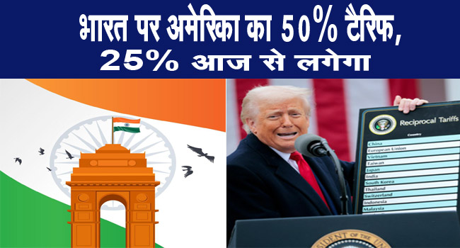 वायस ऑफ पानीपत (रिद्धी)-जैसा की आपको पता है अमेरिका के राष्ट्रपति डोनाल्ड ट्रम्प आजकल अपने टेरिफ के फैसले को लेकर चर्चा का विषय बने हुए है, उन्होंने हाल ही में भारत पर 25% टेरिफ लगाया था, और अब ट्रम्प ने बुधवार को एग्जीक्यूटिव ऑर्डर पर साइन कर 25% टैरिफ बढ़ा दिया है…आपको बता दे की ये आदेश 27 अगस्त से लागू होगा। हालांकि एग्जीक्यूटिव ऑर्डर में कहा गया है कि रूसी तेल खरीद की वजह से भारत पर ये एक्शन लिया गया है। इससे पहले उन्होंने 30 जुलाई को भारत पर 25% टैरिफ का ऐलान किया था,और अब 25% बढ़कर भारत पर कुल 50% टैरिफ लगेगा, हालांकि आपको बता दे की भारतीय विदेश मंत्रालय ने इस कार्रवाई को गलत बताया है,वहीं अमेरिकी राष्ट्रपति डोनाल्ड ट्रंप ने भारत से आयातित वस्तुओं पर कुल 50% टैरिफ लगाने के बाद संकेत दिया है कि सेकेंडरी सैंक्शंस भी जल्द लागू हो सकते हैं।
